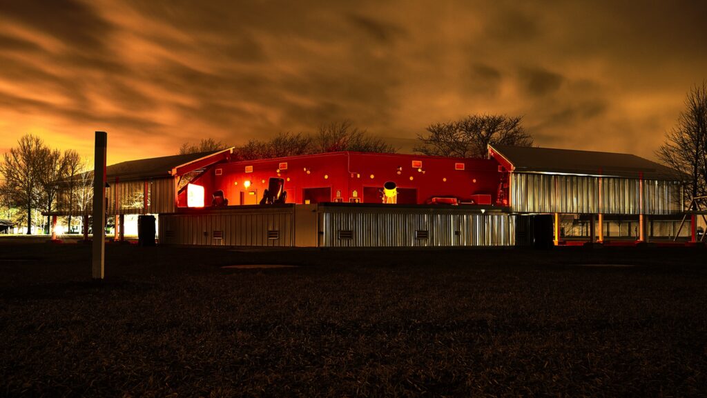The building includes two main sections. The front section has swept-back “wings,” with room for up to four telescopes. A control room with additional technology and items makes up the other portion of the observatory.